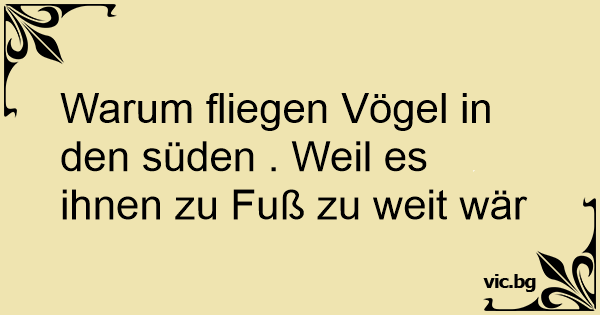 Warum fliegen Vögel in den süden . Weil es ihnen zu Fuß zu weit wär
