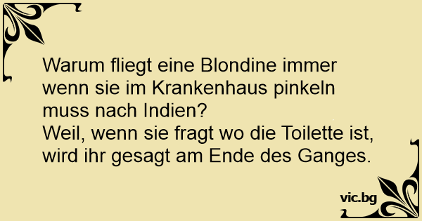 Warum fliegt eine Blondine immer wenn sie im Krankenhaus рinкеln muss nach Indien?