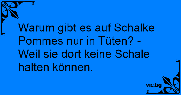 Warum gibt es auf Schalke Pommes nur in Tüten? - Weil sie dort keine Schale halten können.