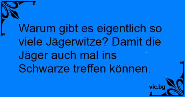 Warum gibt es eigentlich so viele Jägerwitze? Damit die Jäger auch mal ins Schwarze treffen können.