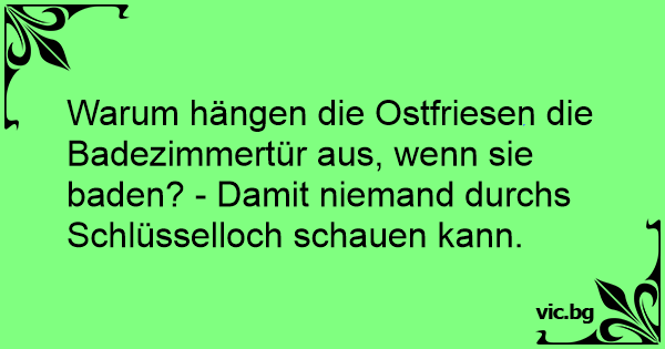 Warum hängen die Ostfriesen die Badezimmertür aus, wenn sie baden? - Damit niemand durchs Schlüsselloch schauen kann.