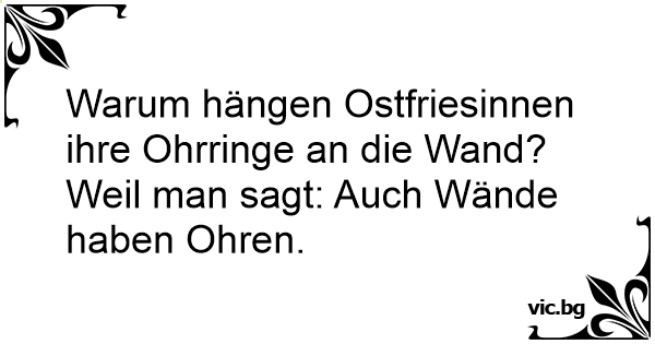 Warum hängen Ostfriesinnen ihre Ohrringe an die Wand? Weil man sagt: Auch Wände haben Ohren.
