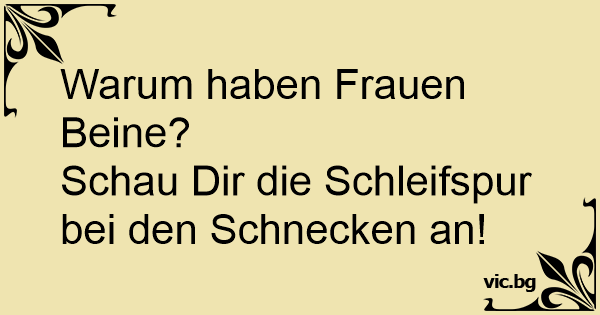 Warum haben Frauen Beine? - Naja, man kennt die Sauerei ja von den Schnecken!