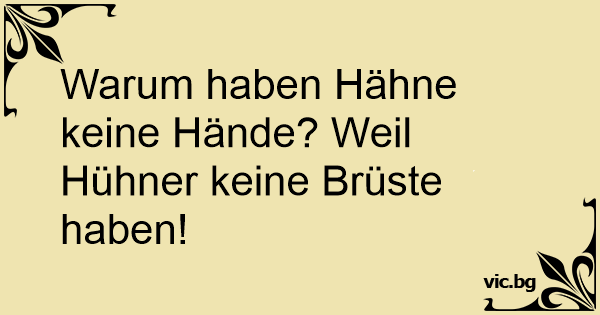 Warum haben Hähne keine Hände? Weil Hühner keine Brüste haben!