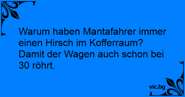 Warum haben Mantafahrer immer einen Hirsch im Kofferraum?