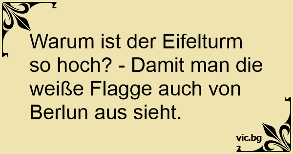 Warum ist der Eifelturm so hoch? - Damit man die weiße Flagge auch von Berlun aus sieht.