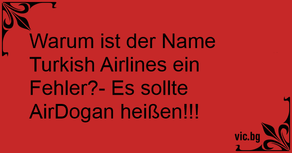 Warum ist der Name Turkish Airlines ein Fehler?- Es sollte AirDogan heißen!!!