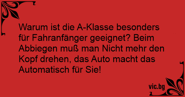 Warum ist die A-Klasse besonders für Fahranfänger geeignet? Beim Abbiegen muß man Niсhт mehr den Kopf drehen, das Auto macht das Automatisch für Sie!