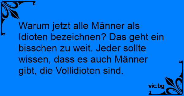 Warum jetzt alle Männer als Idioten bezeichnen? Das geht ein bisschen zu weit. Jeder sollte wissen, dass es auch Männer gibt, die Vollidioten sind.