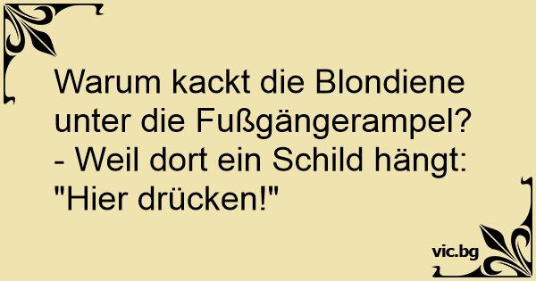 Warum kackt die Blondiene unter die Fußgängerampel? - Weil dort ein Schild hängt: