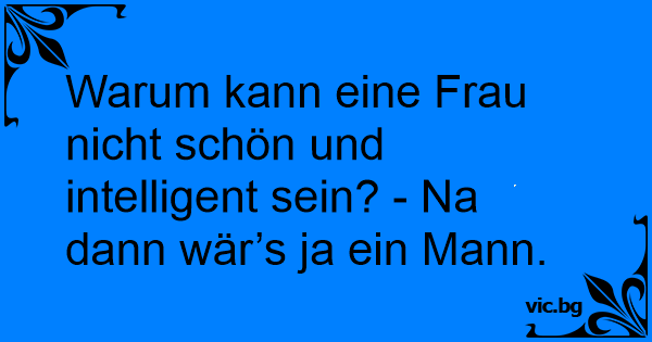 Warum kann eine Frau niсhт schön und intelligent sein? - Na dann wär’s ja ein Mann.
