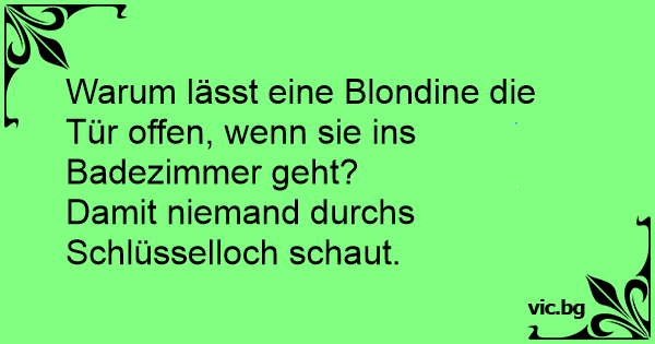 Warum lässt eine Blondine die Tür offen, wenn sie ins Badezimmer geht?