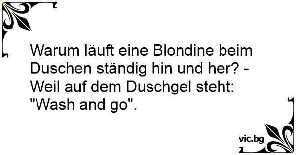 Warum läuft eine Blondine beim Duschen ständig hin und her? - Weil auf dem Duschgel steht: