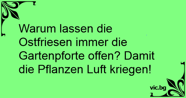 Warum lassen die Ostfriesen immer die Gartenpforte offen? Damit die Pflanzen Luft kriegen!
