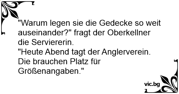 "Heute Abend tagt der Anglerverein. Die brauchen Platz für Größenangaben."