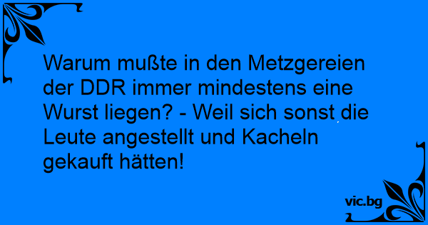 Warum mußte in den Metzgereien der DDR immer mindestens eine Wurst liegen? - Weil sich sonst die Leute angestellt und Kacheln gekauft hätten!