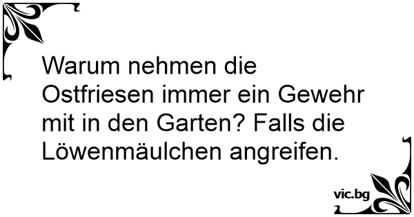 Warum nehmen die Ostfriesen immer ein Gewehr mit in den Garten? Falls die Löwenmäulchen angreifen.