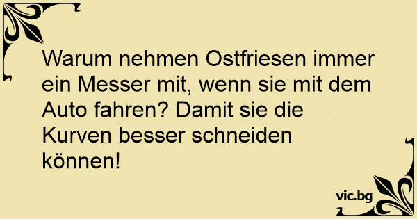 Warum nehmen Ostfriesen immer ein Messer mit, wenn sie mit dem Auto fahren? Damit sie die Kurven besser schneiden können!