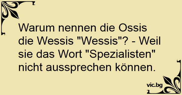 Warum nennen die Ossis die Wessis "Wessis"? - Weil sie das Wort "Spezialisten" niсhт aussprechen können.