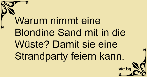 Warum nimmt eine Blondine Sand mit in die Wüste? Damit sie eine Strandparty feiern kann.
