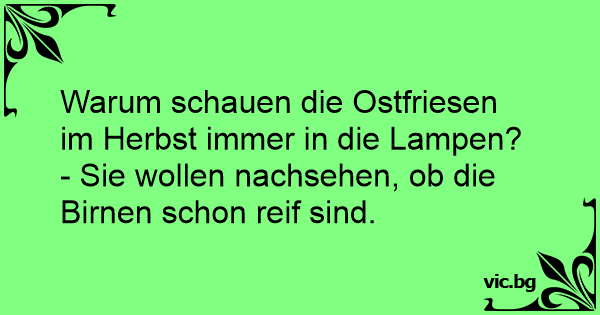 Warum schauen die Ostfriesen im Herbst immer in die Lampen? - Sie wollen nachsehen, ob die Birnen schon reif sind.