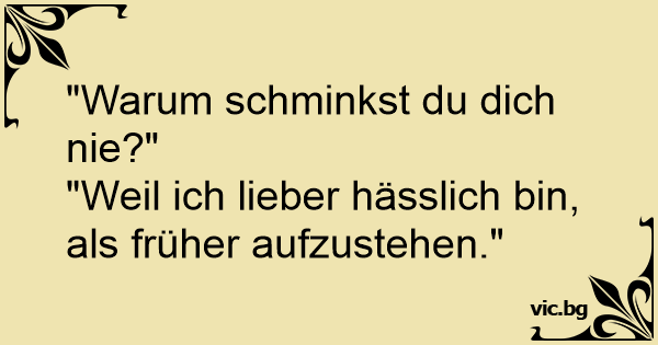 "Weil ich lieber hässlich bin, als früher aufzustehen."