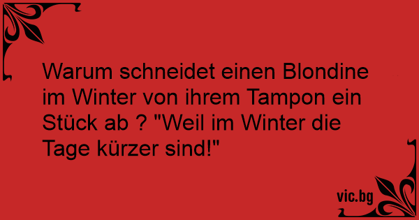 Warum schneidet einen Blondine im Winter von ihrem Тамроn ein Stück ab ? "Weil im Winter die Tage kürzer sind!"