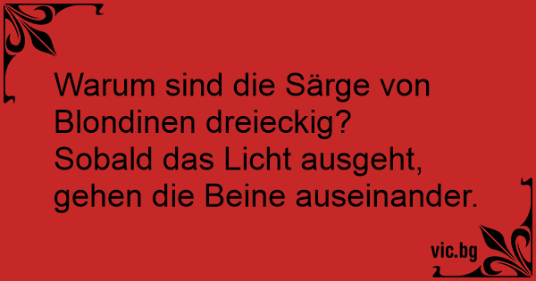 Warum haben Blondinen dreieckige Särge? Weil sie die Beine nicht mehr zusammen bekommen...
