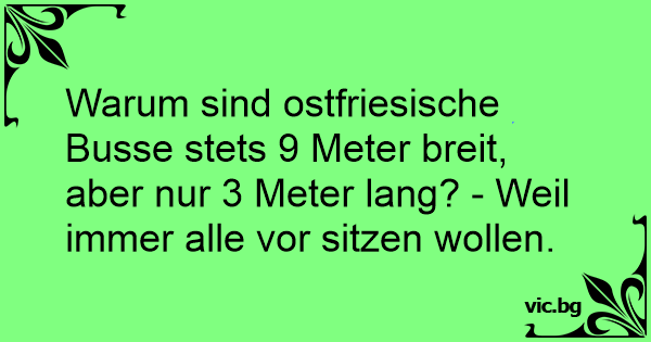 Warum sind ostfriesische Busse stets 9 Meter breit, aber nur 3 Meter lang? - Weil immer alle vor sitzen wollen.