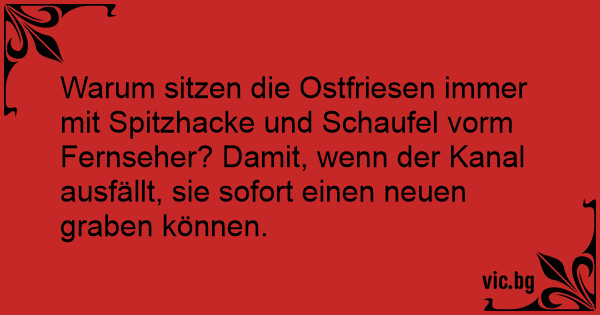Warum sitzen die Ostfriesen immer mit Spitzhacke und Schaufel vorm Fernseher? Damit, wenn der Kanal ausfällt, sie sofort einen neuen graben können.
