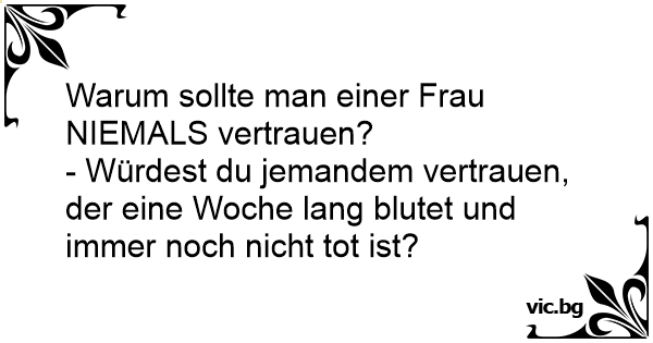 Warum Man(n) einer Frau nicht trauen kann? Wie soll man jemandem vertrauen, der tagelang blutet ohne zu sterben, der nass wird ohne dass es regnet???