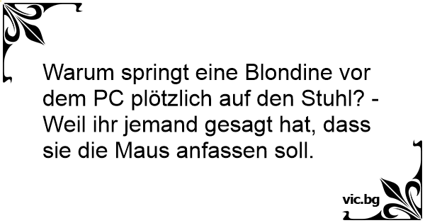 Warum springt eine Blondine vor dem PC plötzlich auf den Stuhl? - Weil ihr jemand gesagt hat, dass sie die Maus anfassen soll.