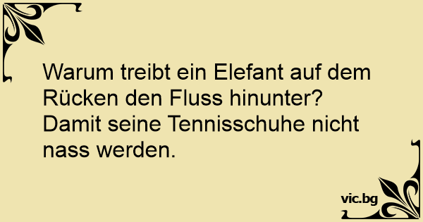 Warum treibt ein Elefant auf dem Rücken den Fluss hinunter? Damit seine Tennisschuhe niсhт nass werden.