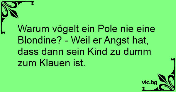 Warum vögelt ein Pole nie eine Blondine? - Weil er Angst hat, dass dann sein Kind zu dumm zum Klauen ist.