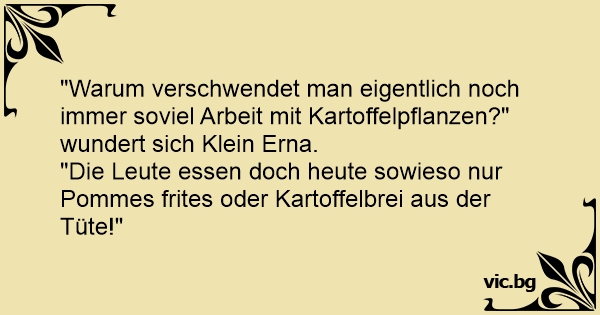 "Warum verschwendet man eigentlich noch immer soviel Arbeit mit Kartoffelpflanzen?" wundert sich Klein Erna.