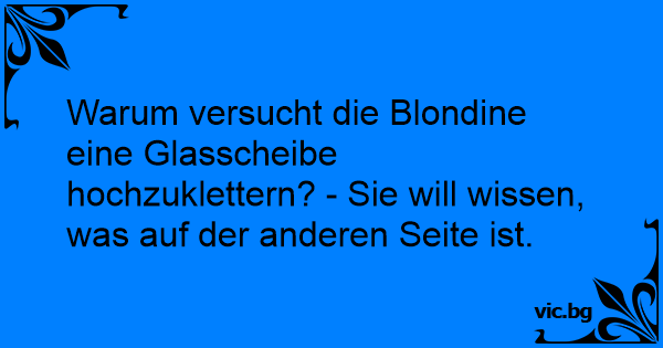 Warum versucht die Blondine eine Glasscheibe hochzuklettern? - Sie will wissen, was auf der anderen Seite ist.