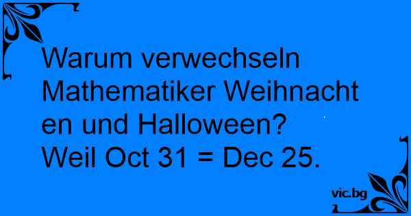 Warum verwechseln Informatiker Halloween und Weihnachten? Oct(31) == dec(25)