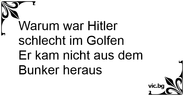 – Vet du varför Hitler inte var bra på golf? – Nej. – Han kom aldrig upp ur bunkern.