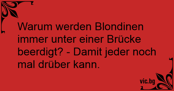 Warum werden Blondinen immer unter einer Brücke beerdigt? - Damit jeder noch mal drüber kann.