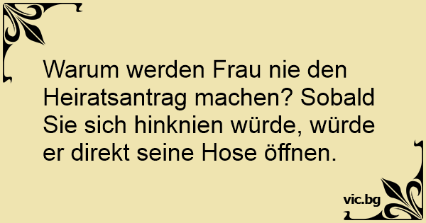 Warum werden Frau nie den Heiratsantrag machen? Sobald Sie sich hinknien würde, würde er direkt seine Hose öffnen.