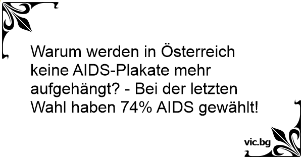 Warum werden in Österreich keine AIDS-Plakate mehr aufgehängt? - Bei der letzten Wahl haben 74% AIDS gewählt!