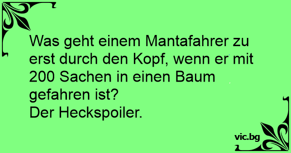 Was geht einem Mantafahrer zu erst durch den Kopf, wenn er mit 200 Sachen in einen Baum gefahren ist?