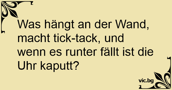 Was hängt an der Wand, macht tick-tack, und wenn es runter fällt ist die Uhr kaputt?