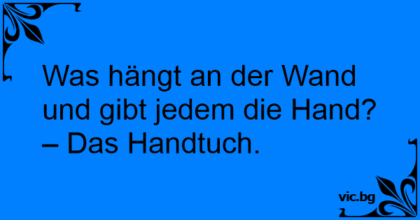 Was hängt an der Wand und gibt jedem die Hand? – Das Handtuch.