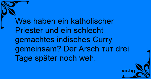 Was haben ein katholischer Priester und ein schlecht gemachtes indisches Curry gemeinsam? Der Аrsсh тuт drei Tage später noch weh.