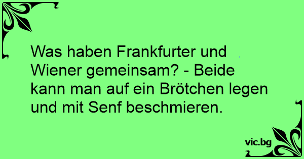 Was haben Frankfurter und Wiener gemeinsam? - Beide kann man auf ein Brötchen legen und mit Senf beschmieren.