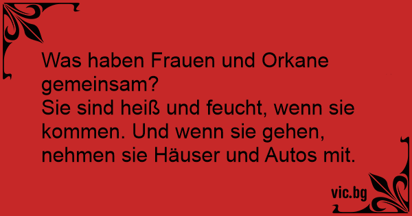 Was haben Frauen und Orkane gemeinsam ?? Es fängt mit einem Blasen an, und dann ist das Haus weg.