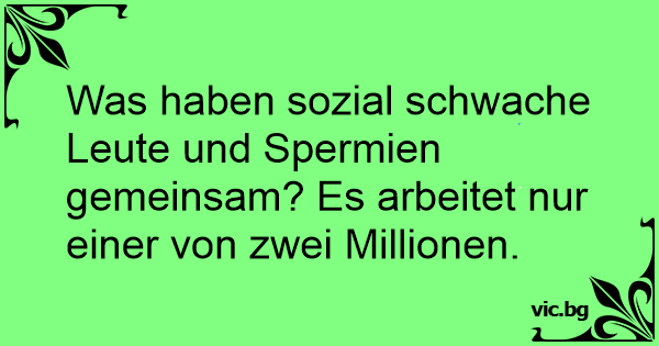 Was haben sozial schwache Leute und Spermien gemeinsam? Es arbeitet nur einer von zwei Millionen.