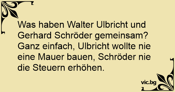 Was haben Walter Ulbricht und Gerhard Schröder gemeinsam? Ganz einfach, Ulbricht wollte nie eine Mauer bauen, Schröder nie die Steuern erhöhen.
