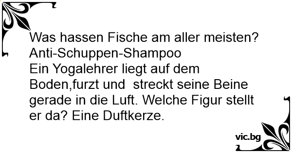 Ein Yogalehrer liegt auf dem Boden,furzt und streckt seine Beine gerade in die Luft. Welche Figur stellt er da? Eine Duftkerze.